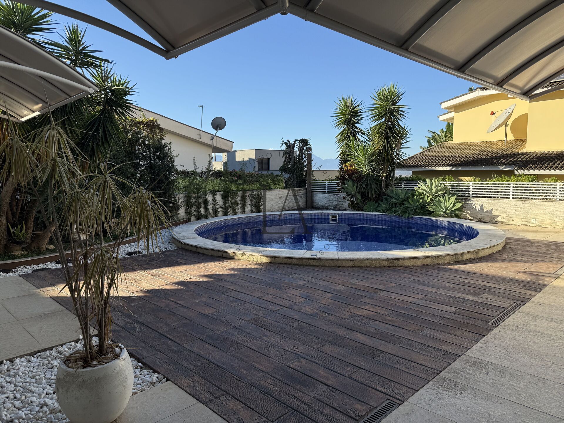 A piscina em formato orgânico convida para momentos de lazer, enquanto o paisagismo cuidadosamente planejado cria um ambiente relaxante e harmonioso. A cozinha com móveis planejados une praticidade e elegância, complementada por uma ampla área de serviço com despensa e espaço dedicado para estender roupas, garantindo organização e conforto no dia a dia.