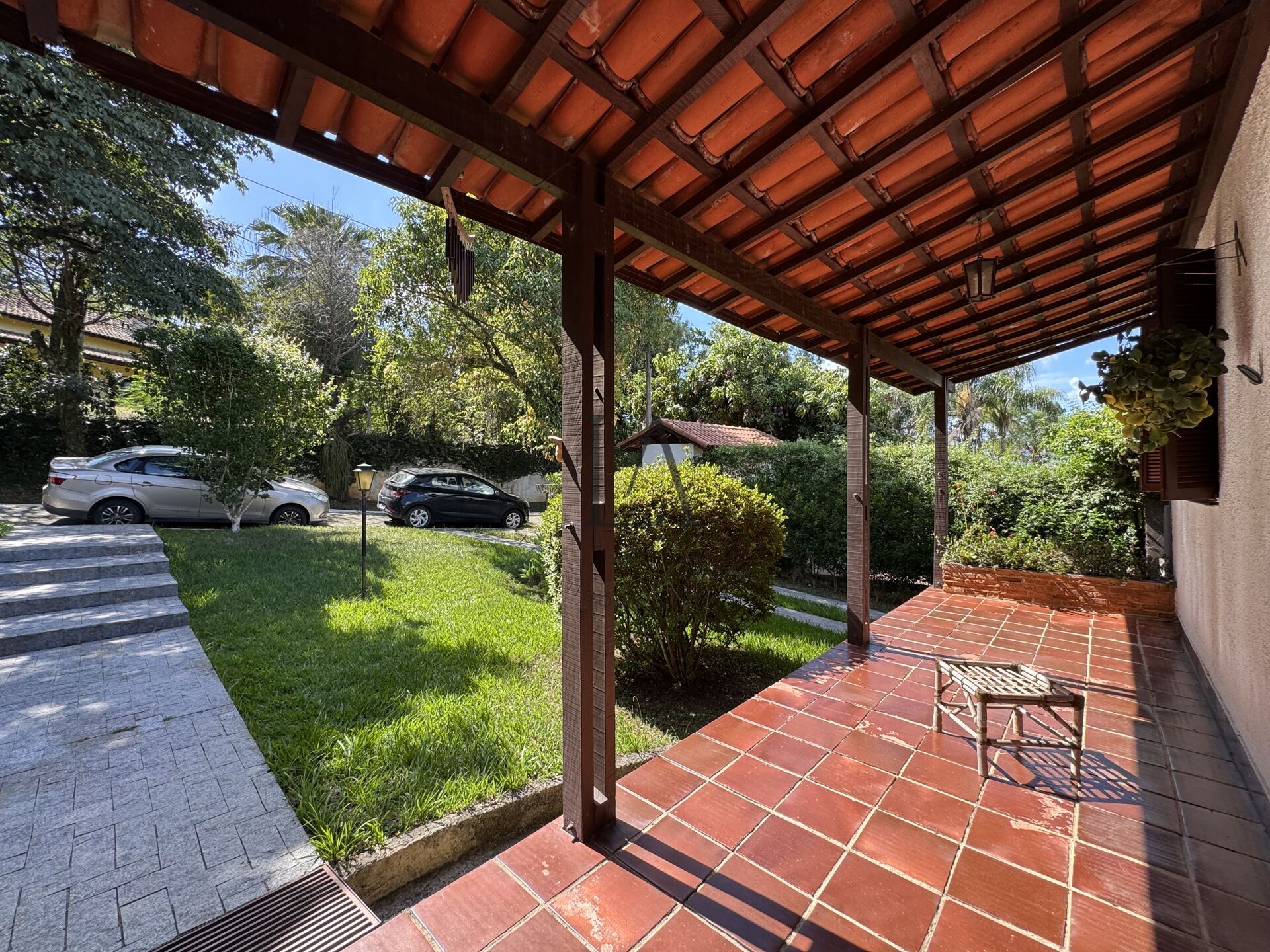 Casa com uma ótima área externa e quintal com espaço de sobra para uma família ser muito Feliz, com muito verde e uma vista maravilhosa para Serra.