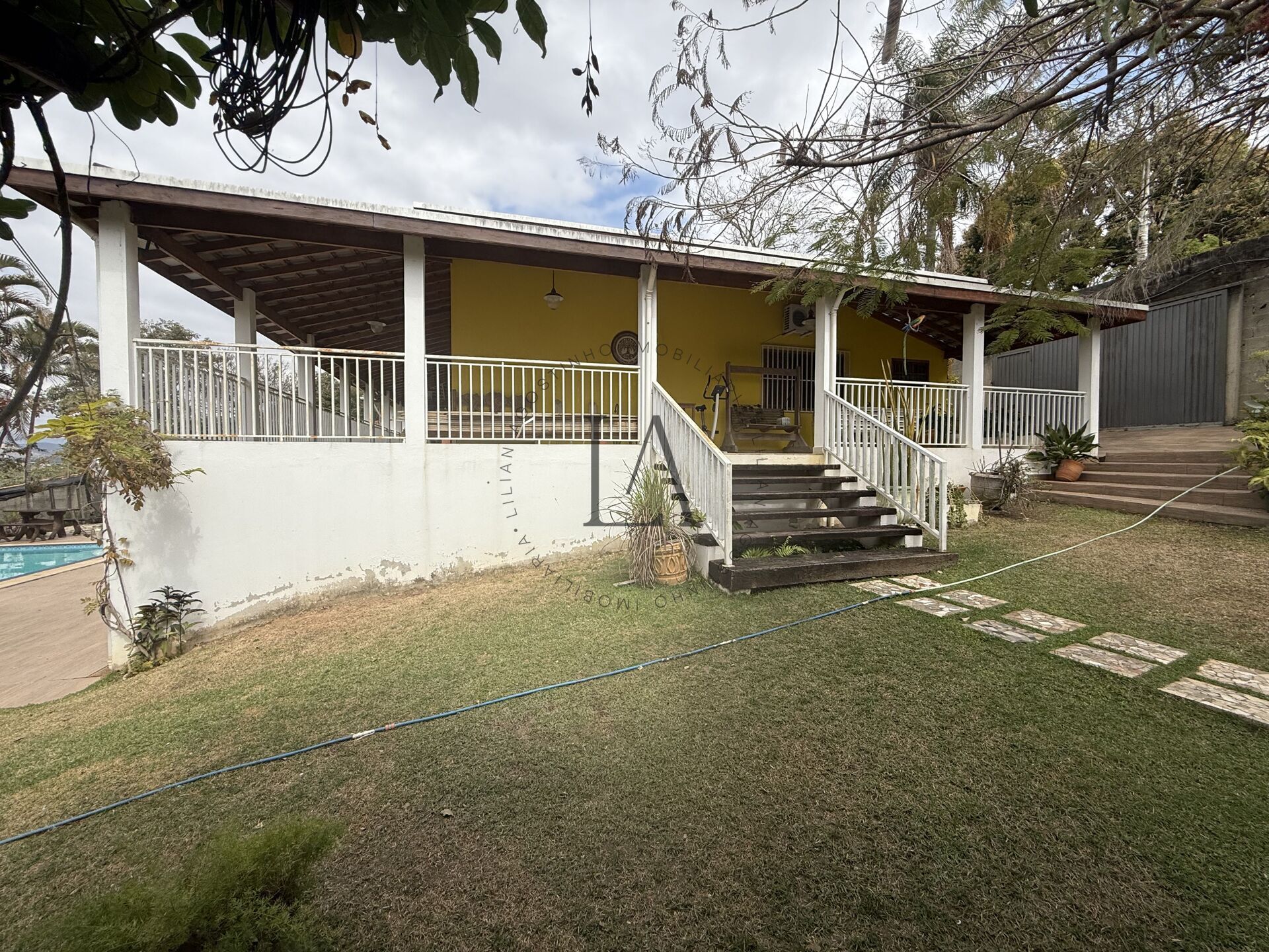 O espaço conta com uma ampla casa principal, piscina, um encantador lago com cascata, além de casa de caseiro, casa de ferramentas e uma horta orgânica cuidadosamente cultivada, oferecendo praticidade e bem-estar em todos os detalhes.