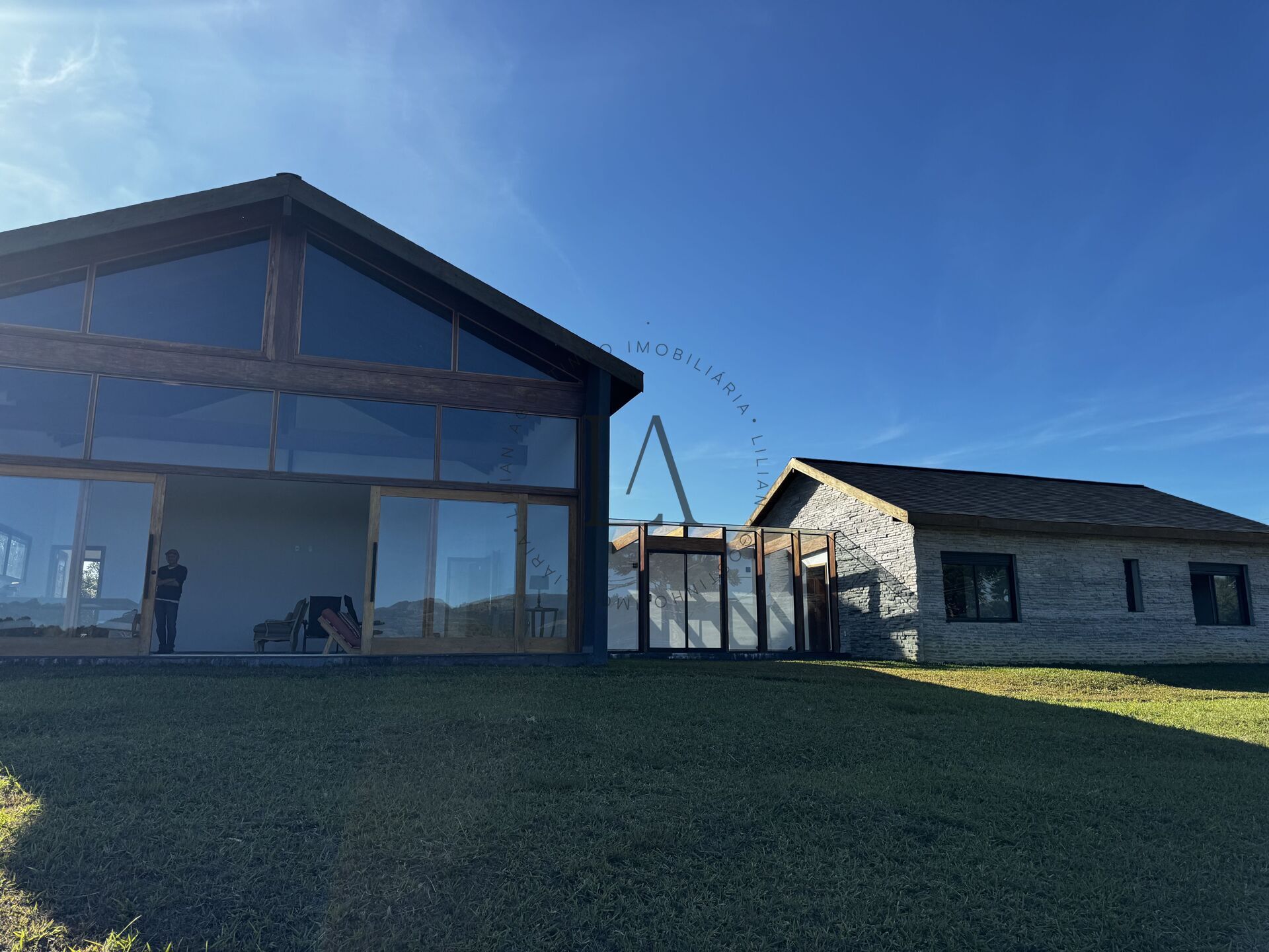 Área externa do Galpão em textura Suvinil. Vidros da passagem Dormitórios ao Galpão em Temperado de 8 mm incluindo cobertura.